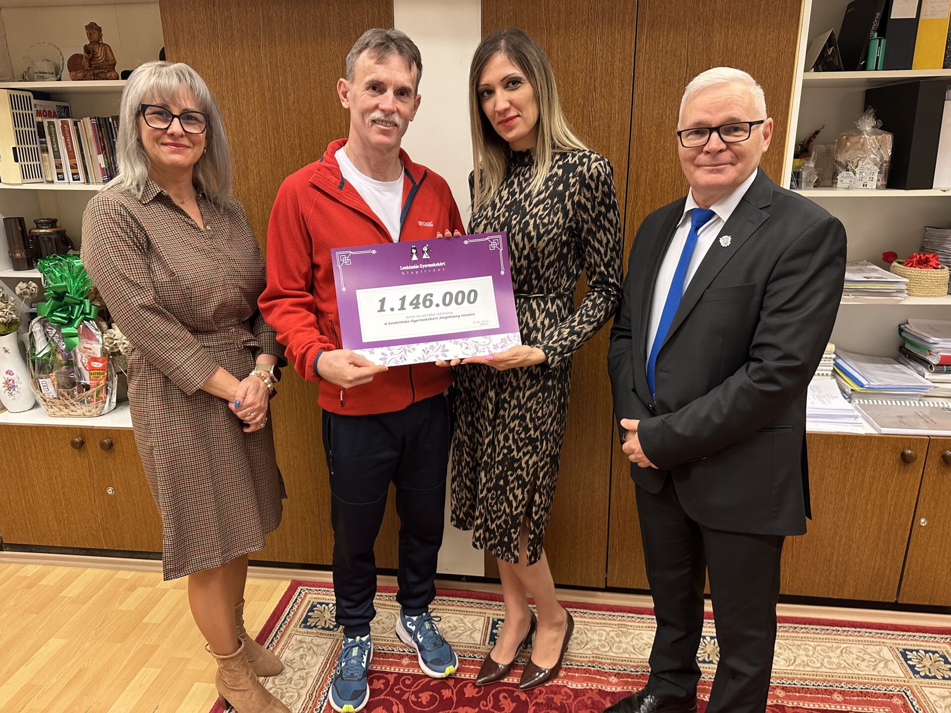 A Liána támogatásáért indított kampány során összegyűlt összeg jelképes átadásán vehettem részt, ahol jelen volt Liána édesanyja, a Leukémiás Gyermekekért Alapítvány képviseletében Béresné Gurbán Júlia kuratóriumi tag, valamint a Nyíregyházi Móra Ferenc Általános Iskola igazgatója, Bajnay Kornél.