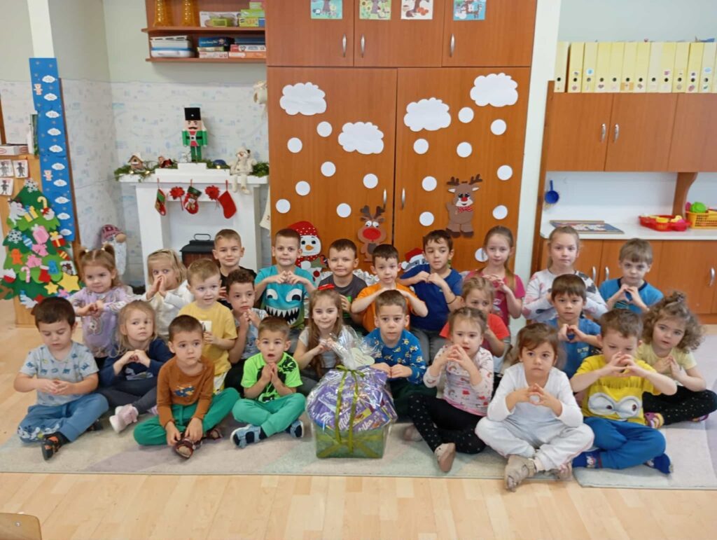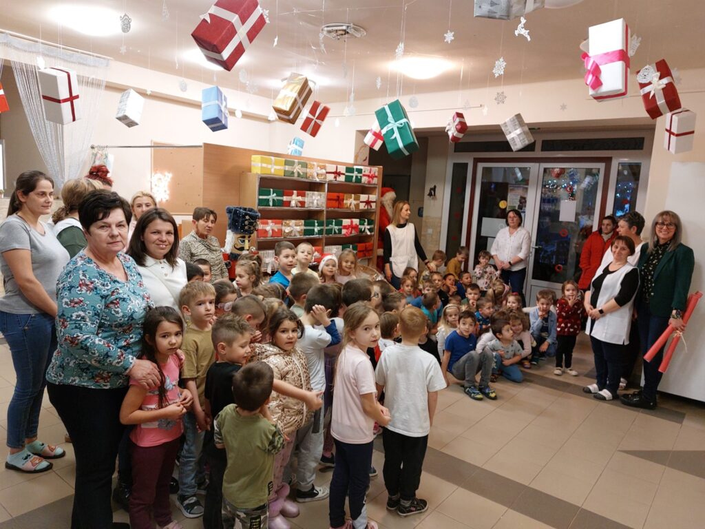 Az óvoda valamennyi csoportja egyszerre adta át a gyógyuló gyermekek számára gyűjtött édességeket. Nagy örömömre óriási, színes rajzokkal és egy doboznyi csodaszépen díszített mézeskaláccsal is megleptek. Már maga az a pillanat megható volt, amikor a kicsik izgatottan sorakoztak az átadáshoz. Az ünnepélyes hangulatot tovább emelte, hogy közösen énekeltük el a „Hull a pelyhes fehér hó” című dalt.