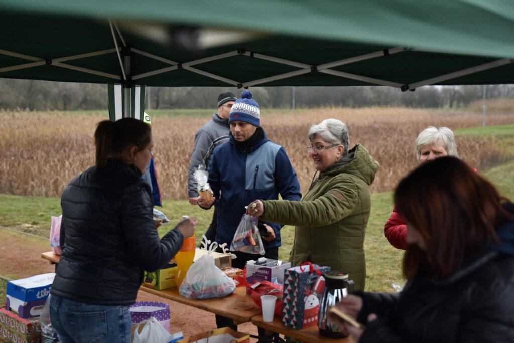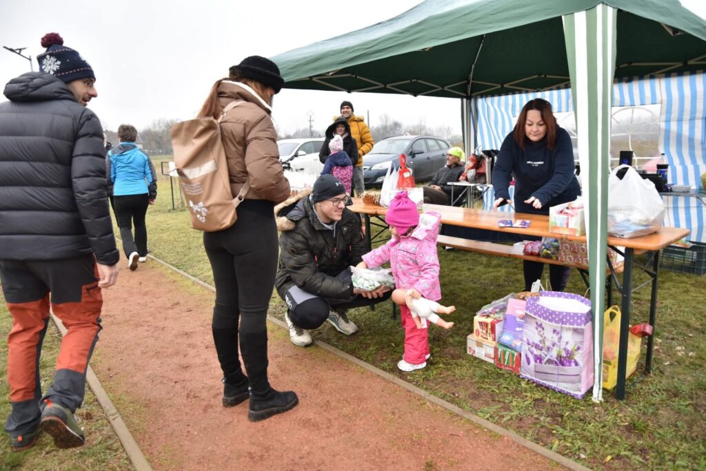Kezdésre szép kis ember sereg gyűlt össze a futópályára és újra át kellett rendezni az adománygyűjtő asztalokat mert hirtelen azt vettük észre,hogy nincs hely!