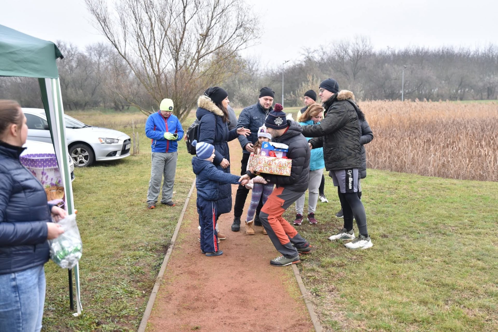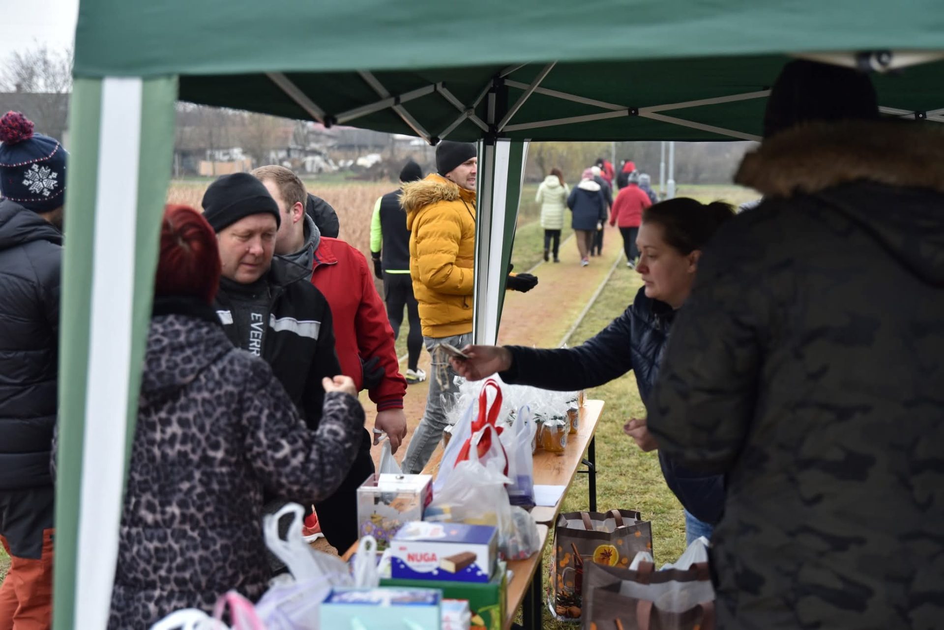 Kezdésre szép kis ember sereg gyűlt össze a futópályára és újra át kellett rendezni az adománygyűjtő asztalokat mert hirtelen azt vettük észre,hogy nincs hely!