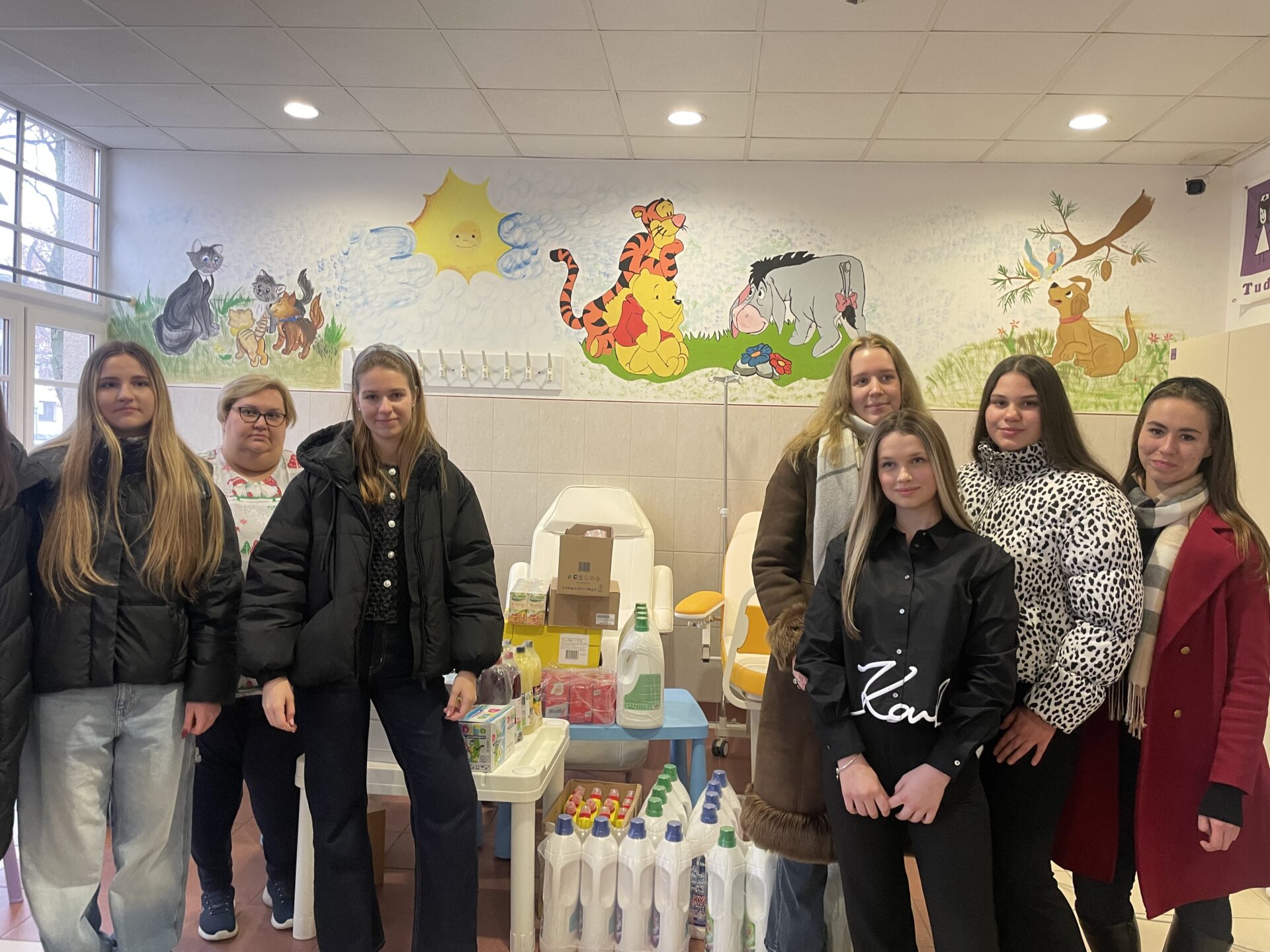 Osztálytársunk, Zsófi leukémiával küzd, ezen az osztályon kemoterápiás kezelése jelenleg is folyik. Szerettünk volna elsősorban neki segíteni, de ő inkább azt szerette volna, ha a Gyermekhematológiai osztály részére gyűjtenénk. Az osztályunk által szervezett sütivásárra aztán az egész iskola megmozdult, és az összegből, amit így gyűjtöttünk, végül tisztító és tisztálkodószereket, élelmiszereket vásároltunk, amik az itt kezelt gyerekeknek és családjaiknak mindennapjaihoz szükségesek.