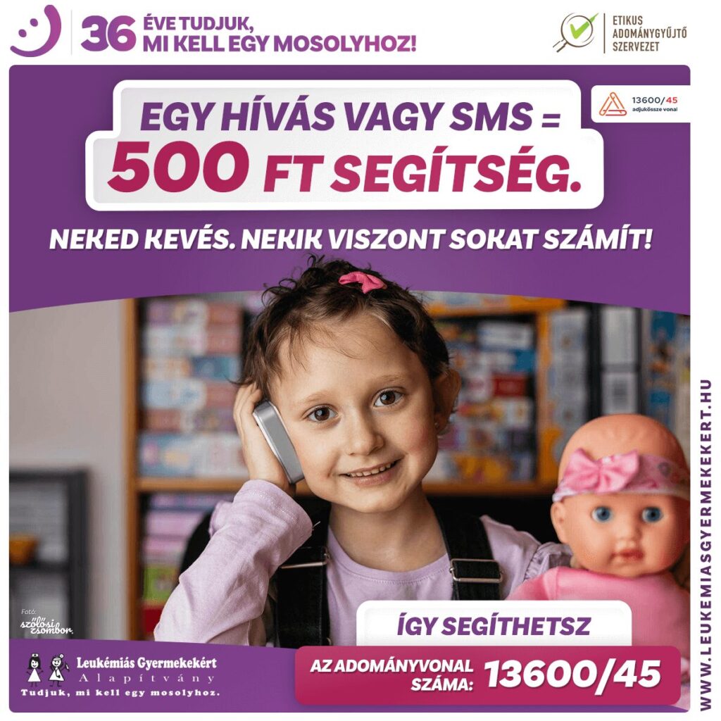 Így 500 Ft-tal támogathatod a beteg gyerekeket alapítványunkon keresztül.