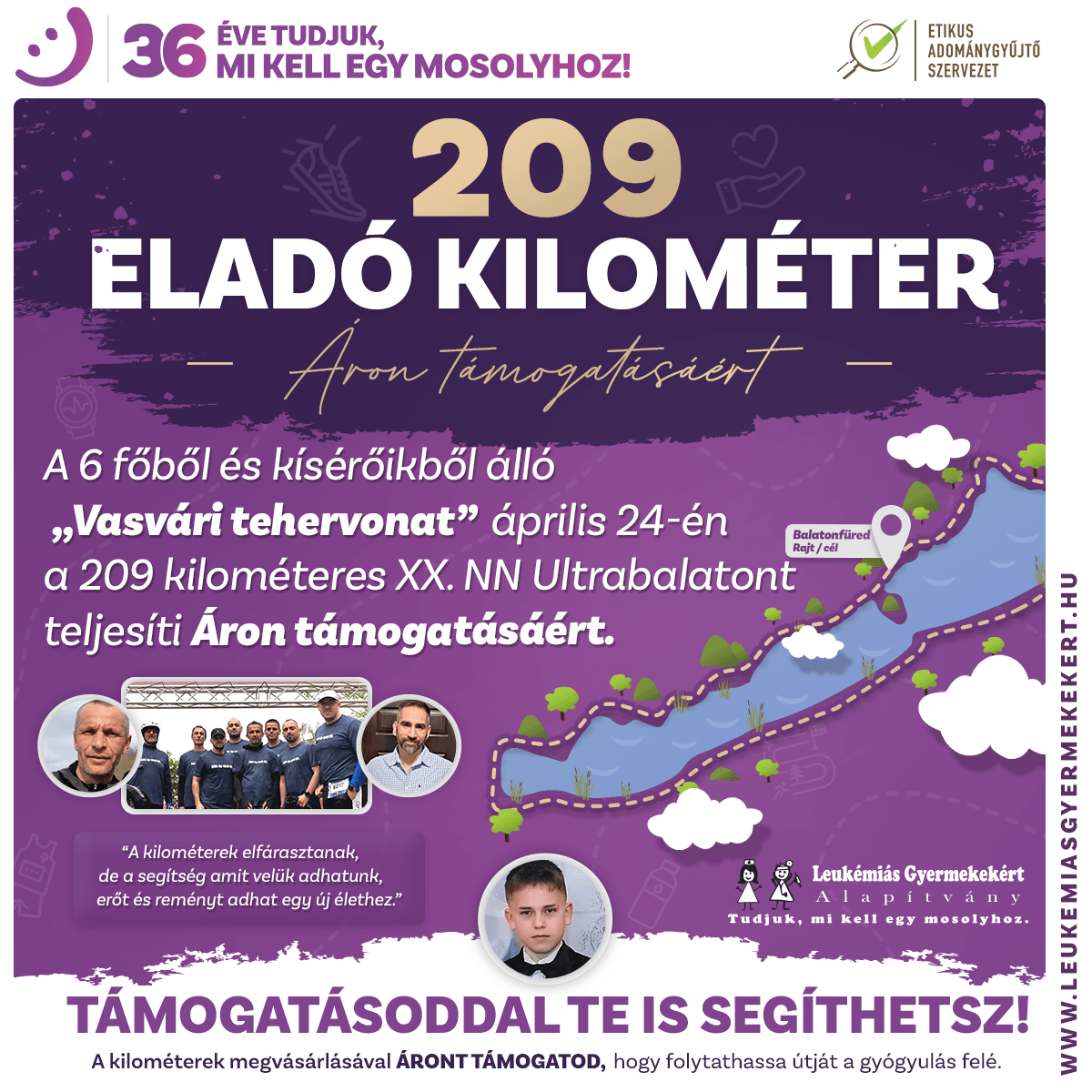 A 6 főből és kísérőikből álló „Vasvári tehervonat” április 24-én a 209 kilométeres XX. NN Ultrabalatont teljesíti Áron támogatásáért.