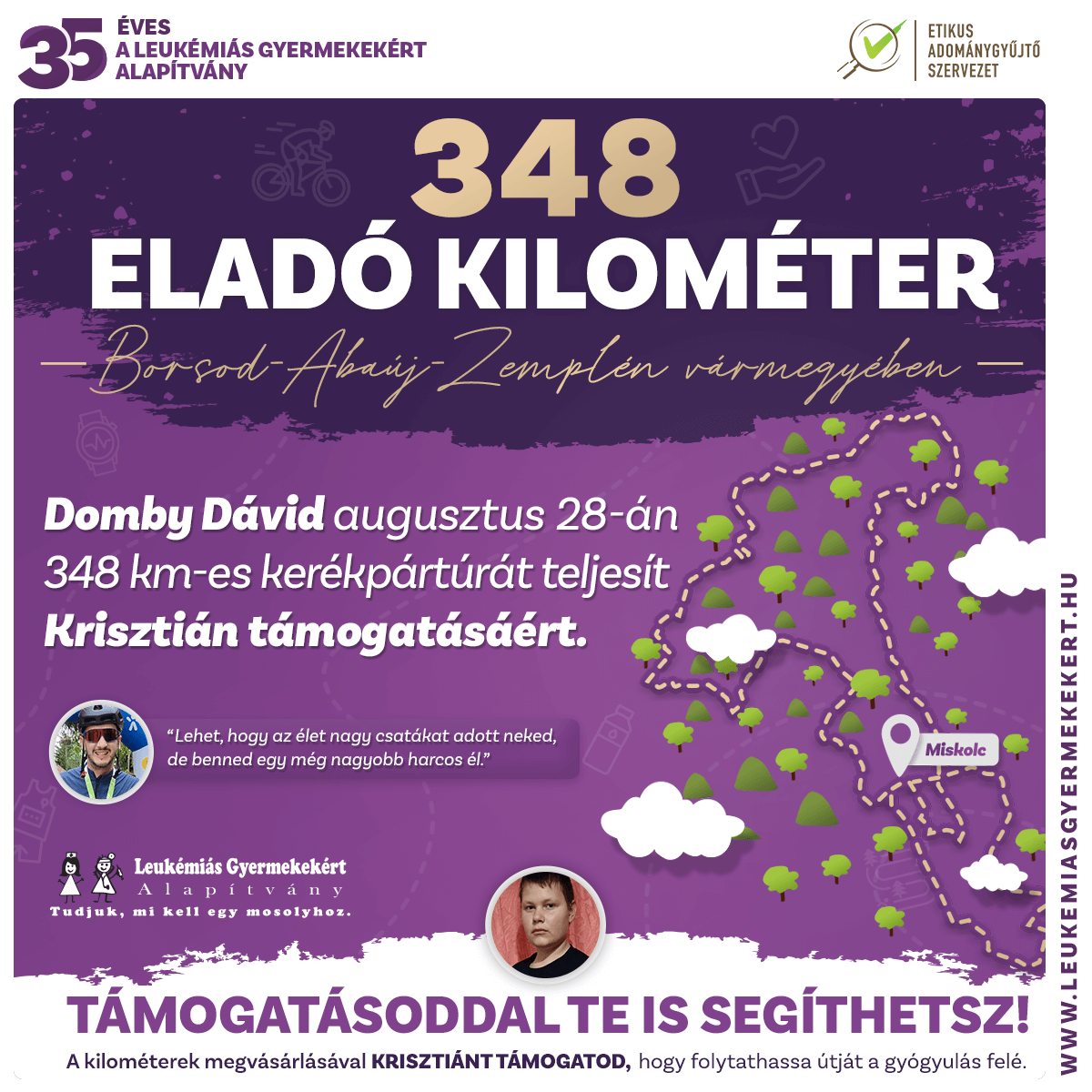 Domby Dávid augusztus 28-án 348 km-es kerékpártúrát teljesít Krisztián támogatásáért.