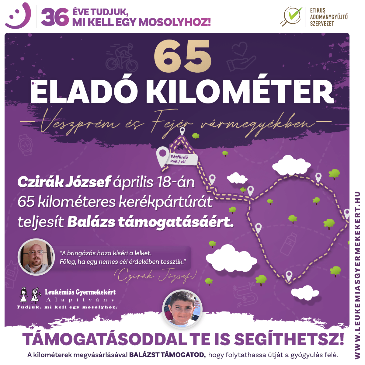 Czirák József április 18-án 65 kilométeres kerékpártúrát teljesít Veszprém és Fejér vármegyékben Balázs támogatásáért.