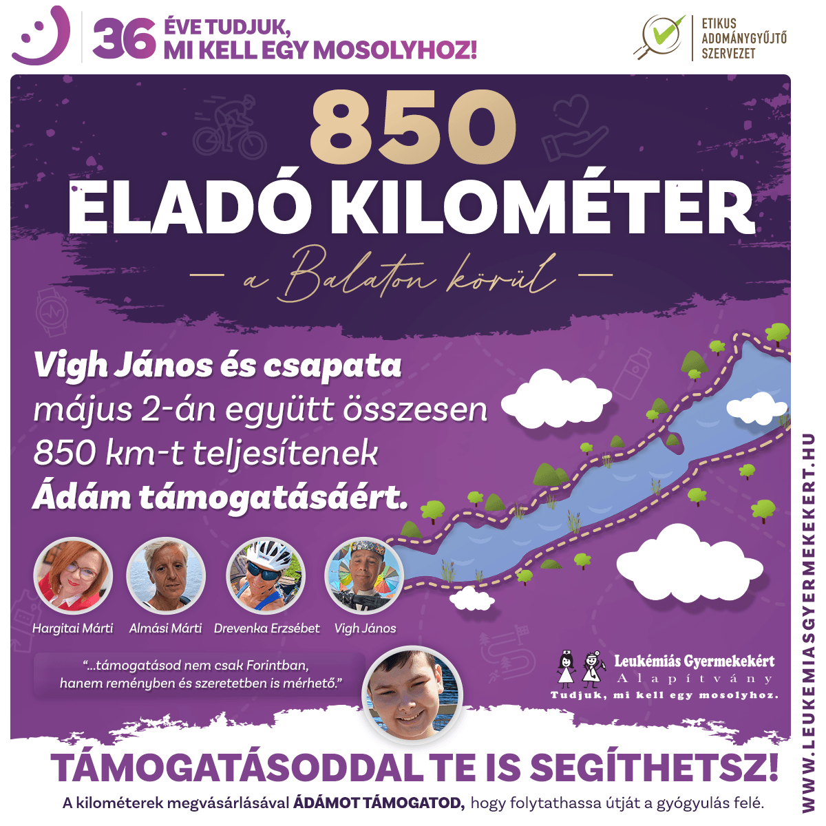 Vigh János és csapata: Hargitai Márti, Almási Márti és Drevenka Erzsébet május 2-án együtt összesen 850 km-t teljesítenek Ádám támogatásáért.